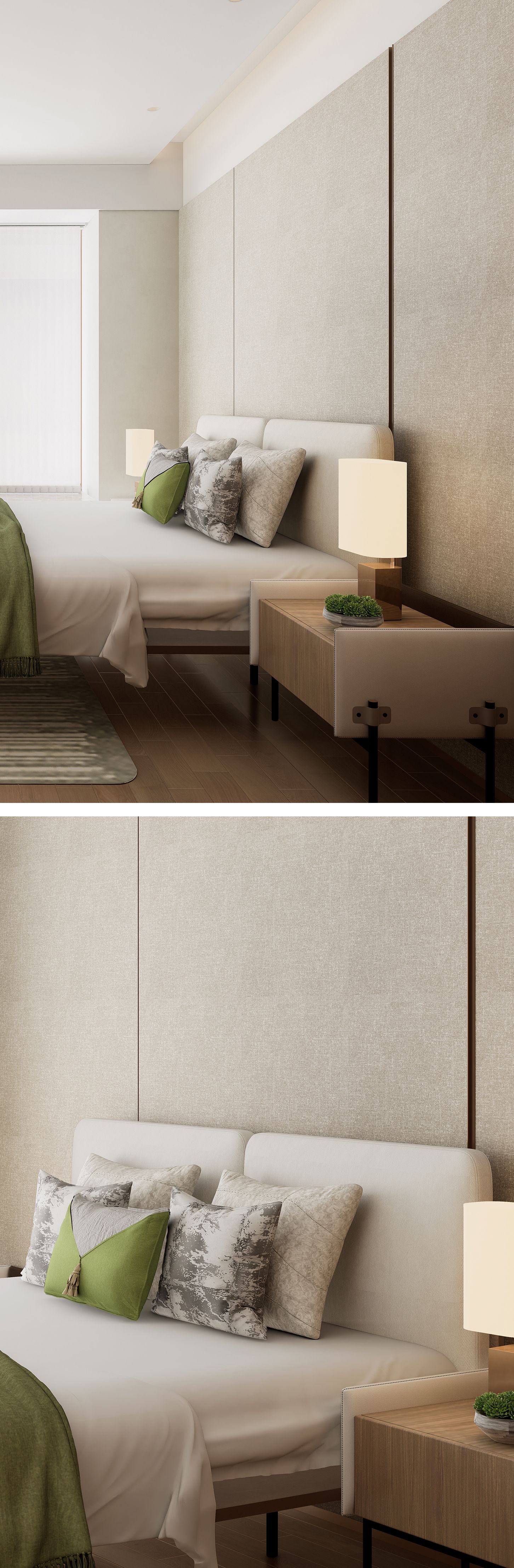 卧室 SPATIAL EFFECTS "奢华无关堆砌,而是融于品质、审美、 品位的独特性,让居者向往的家即刻 成真。"线条、弧面、褶皱、几何...... 主卧空间的每一处设计之笔,以唯美 意境柔化岁月故事,身心的第一重观 感是静谧。
