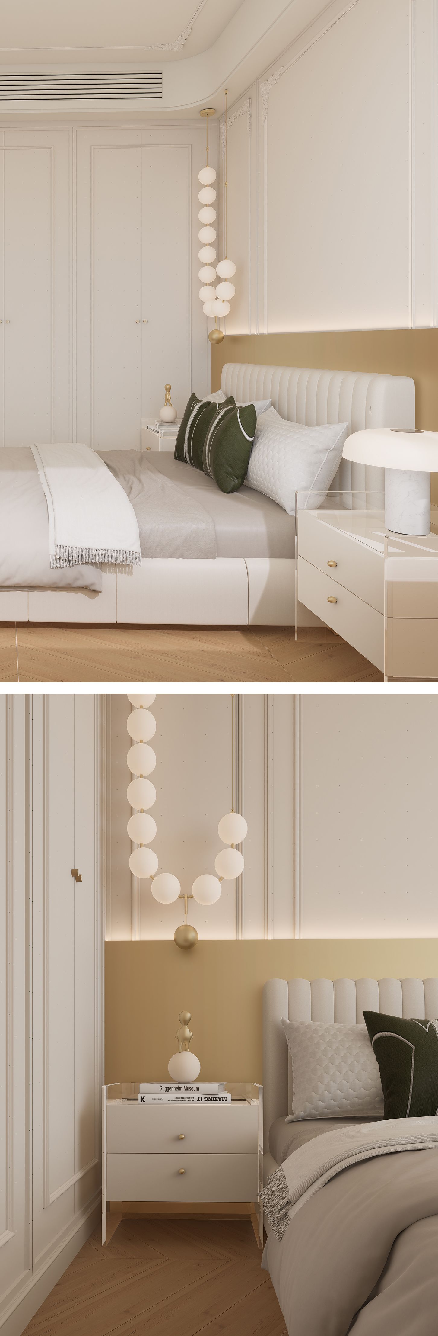 主卧充满法式浪漫,金属护墙板与PU