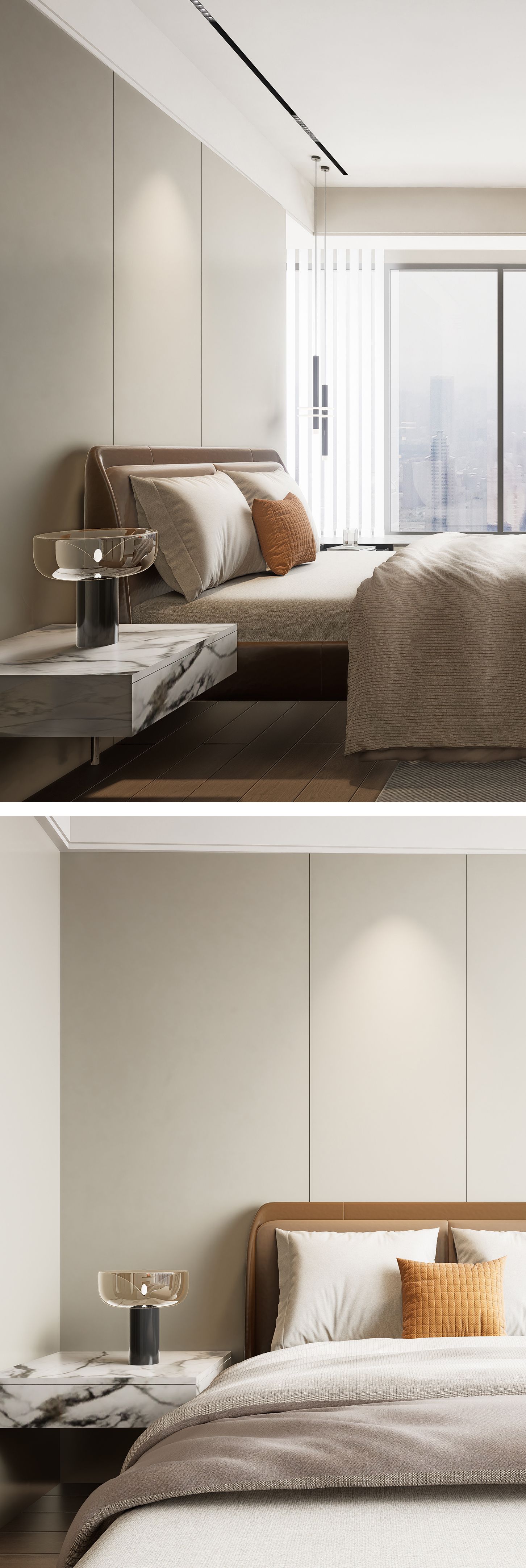 针织床品配玻璃台灯,温润材质勾勒静谧主卧
