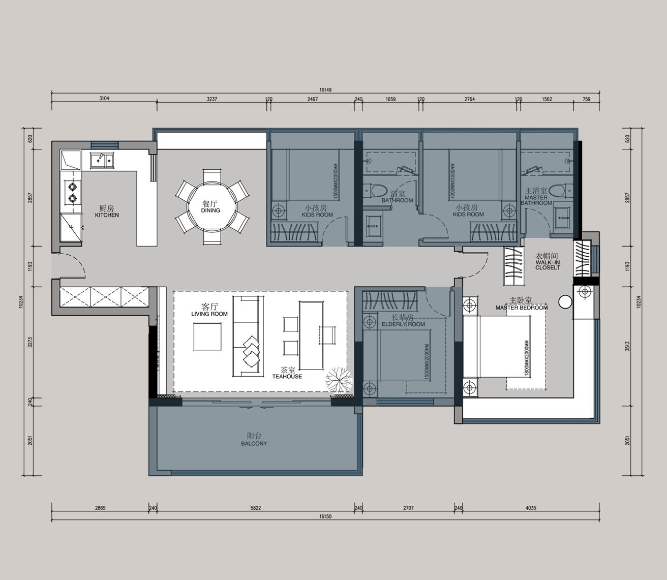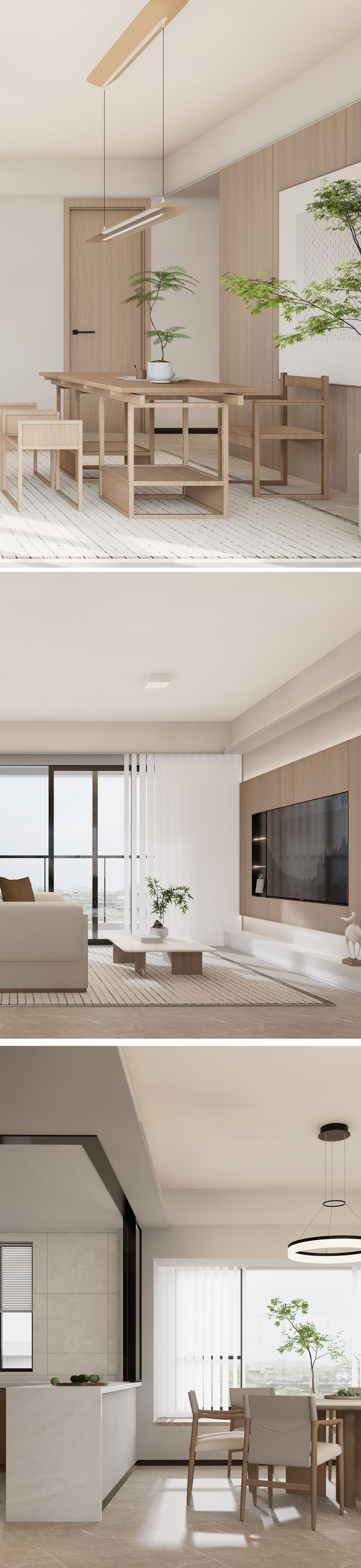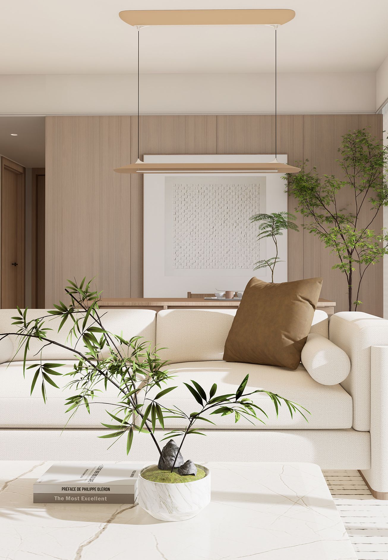 铜条嵌柜角,竹影灯辉映清雅新中式客餐厅
