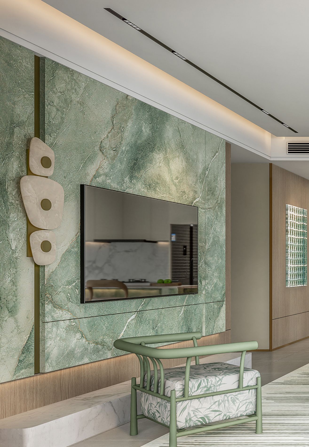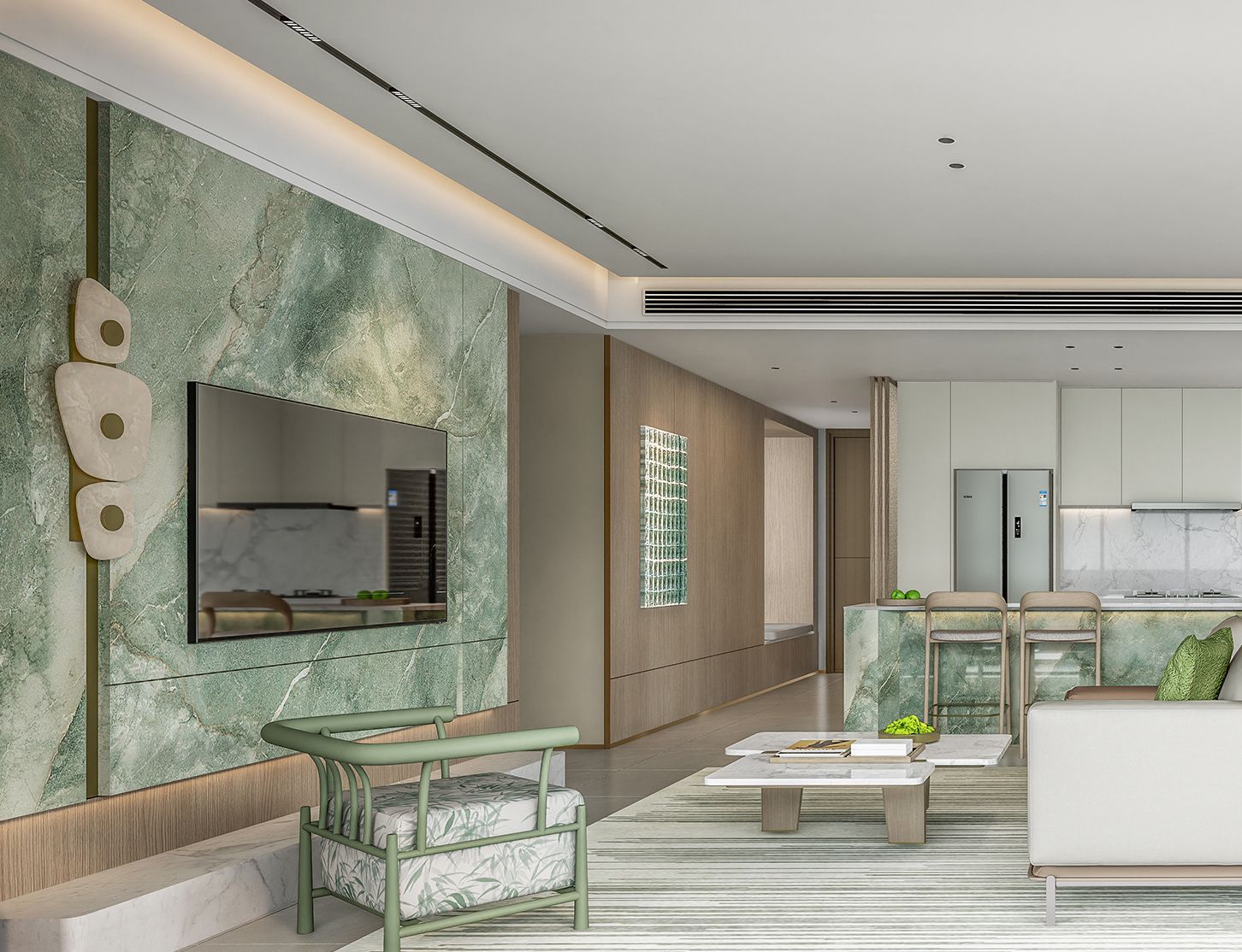 以竹赋形,山石绿叶塑造一派幽静,走动之间仿佛