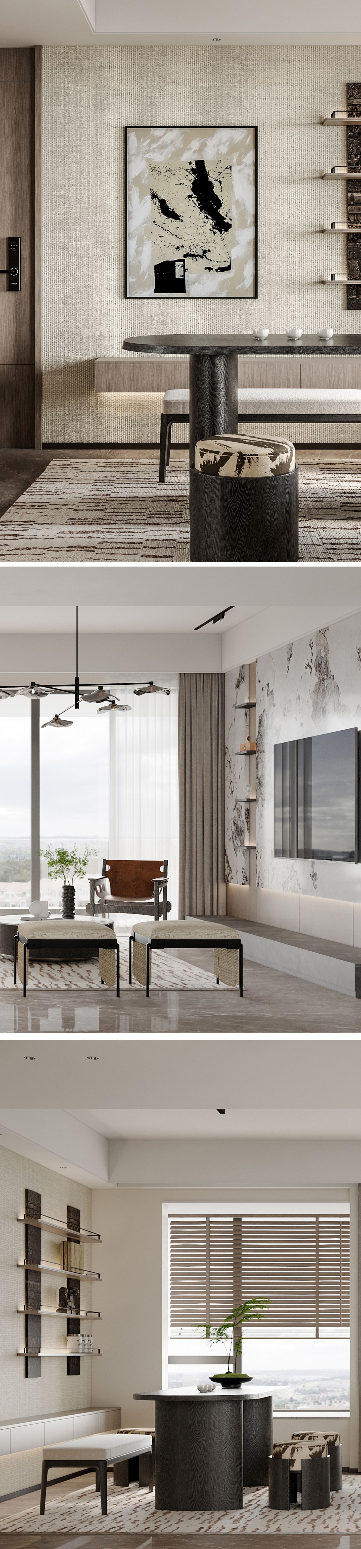 山居气氛。轻松地倚坐在推拉窗旁,或读书或饮茶,