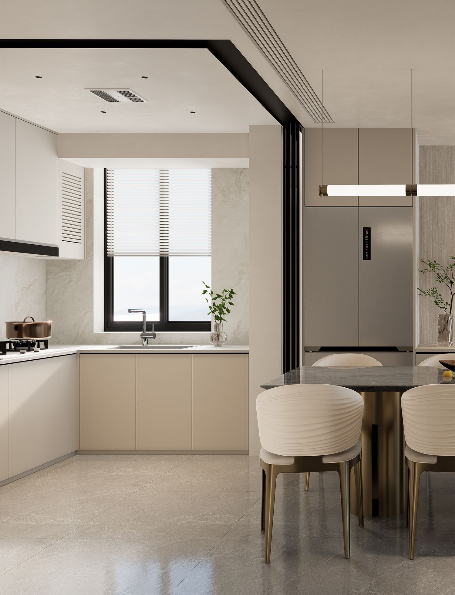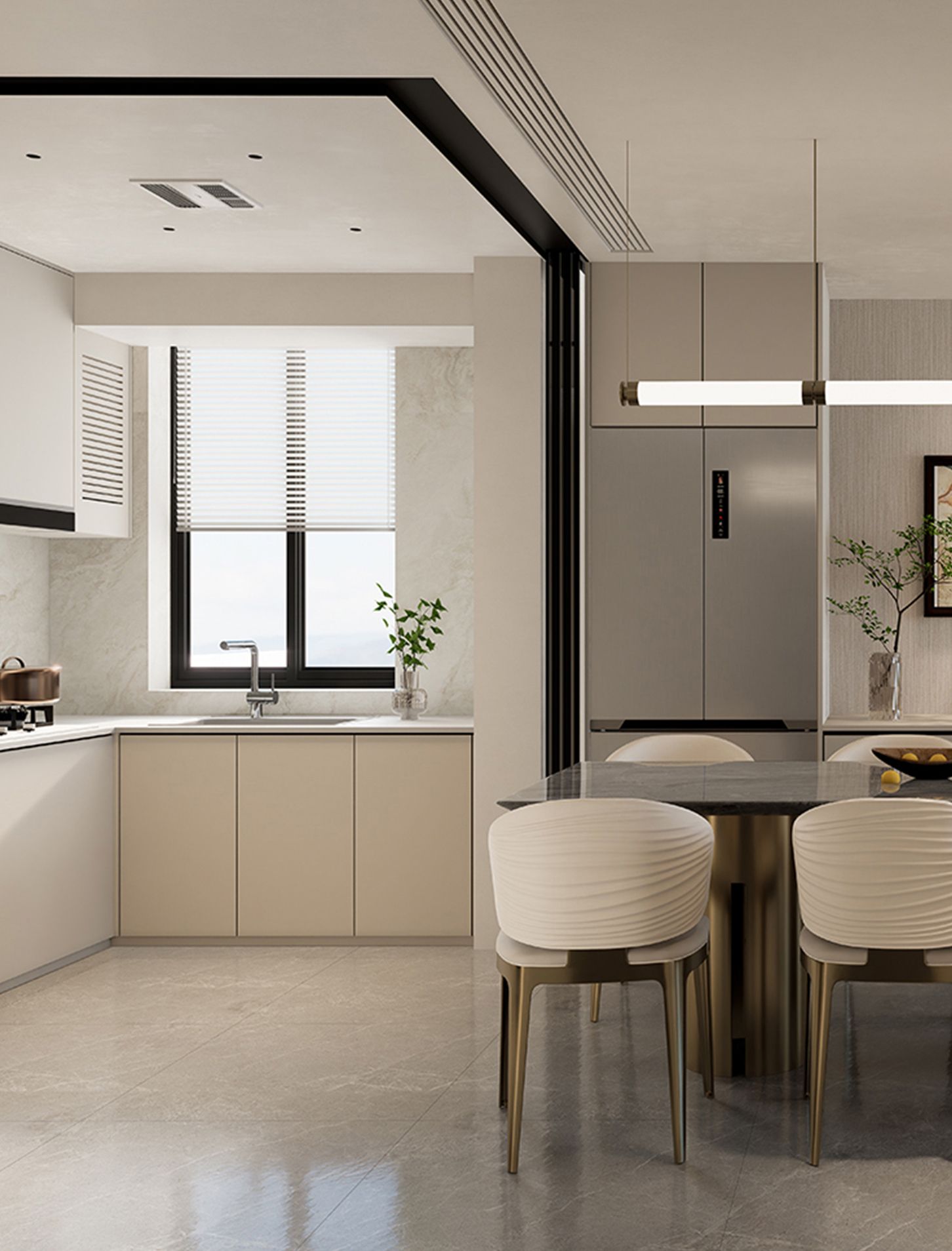 客厅 餐厅 客厅 SPATIAL EFFECTS舒适的沙发,恰到好处的色彩, 松弛优雅间,然沉浸光影。开放 式客餐厅的设计,静享个人时光 或与亲友畅谈,都各得其所。 材质细节 高级灰理石的低调内敛、金属的的奢华、 皮质沙发的舒适各种元素相互碰撞、交融, 形成一幅无声的都市画卷。 餐厅 SPATIAL EFFECTS现代开放式餐厅,通透格局引光入户, 极简线条勾勒质感,三餐时光满是治 愈仪式感。