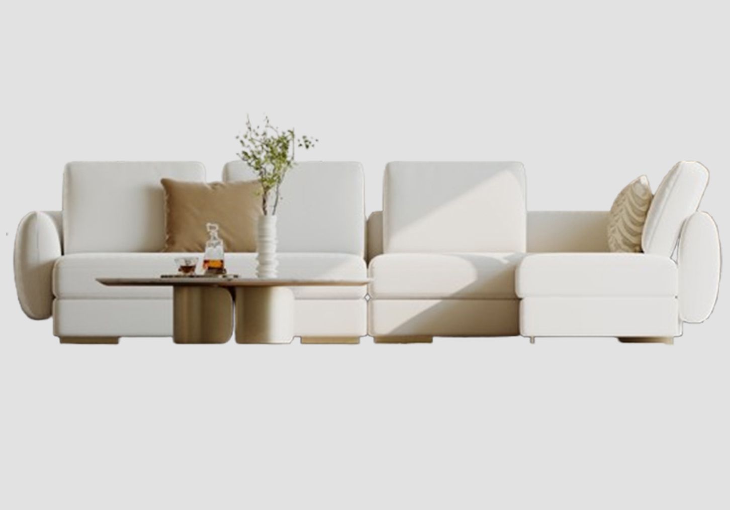 低靠背设计搭配棉麻或绒布面料营造开阔通透氛围。