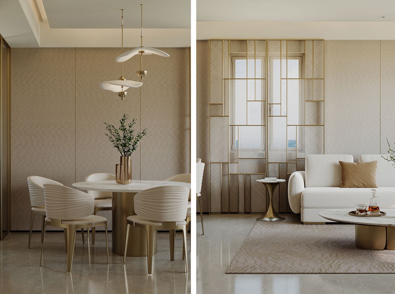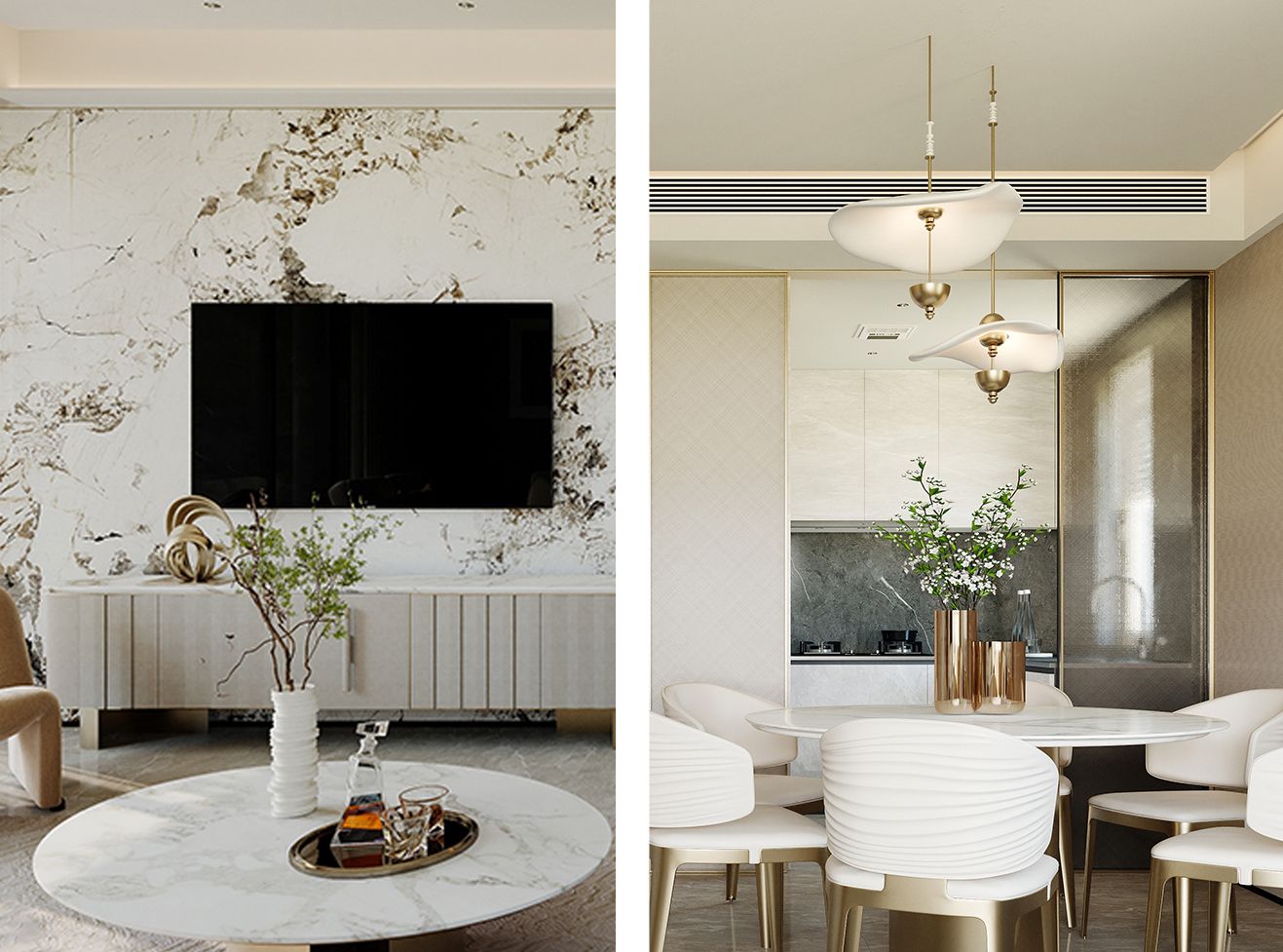 经典与现代融合 历史与击来交错,珍珠白贯穿全局,铸 造极 致优雅,共同演城市幻彩新生活。串联起一个优雅居所。 THE FUSION OF CLASSIC AND MODERN HISTORY AND IMPACT INTERWEAVE, PEARL WHITE RUNS THROUGH THE ENTIRE SCENE, FORGING ULTIMATE ELEGANCE AND JOINTLY PRESENTING A NEW LIFE OF URBAN SPLENDOR. STRING TOGETHER AN ELEGANT RESIDENCE.